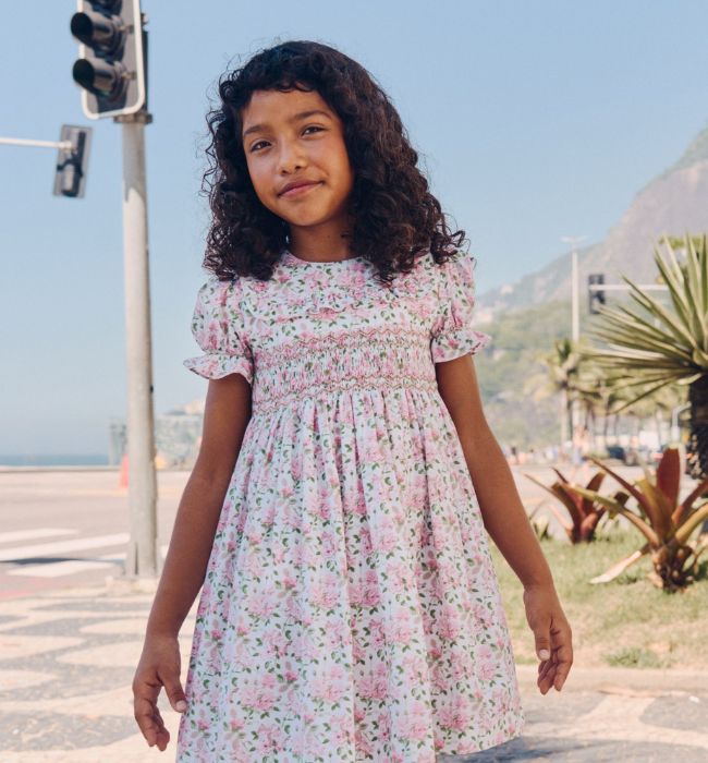 Pink Garland Floral Penelope Girl Hand-Smocked Dress