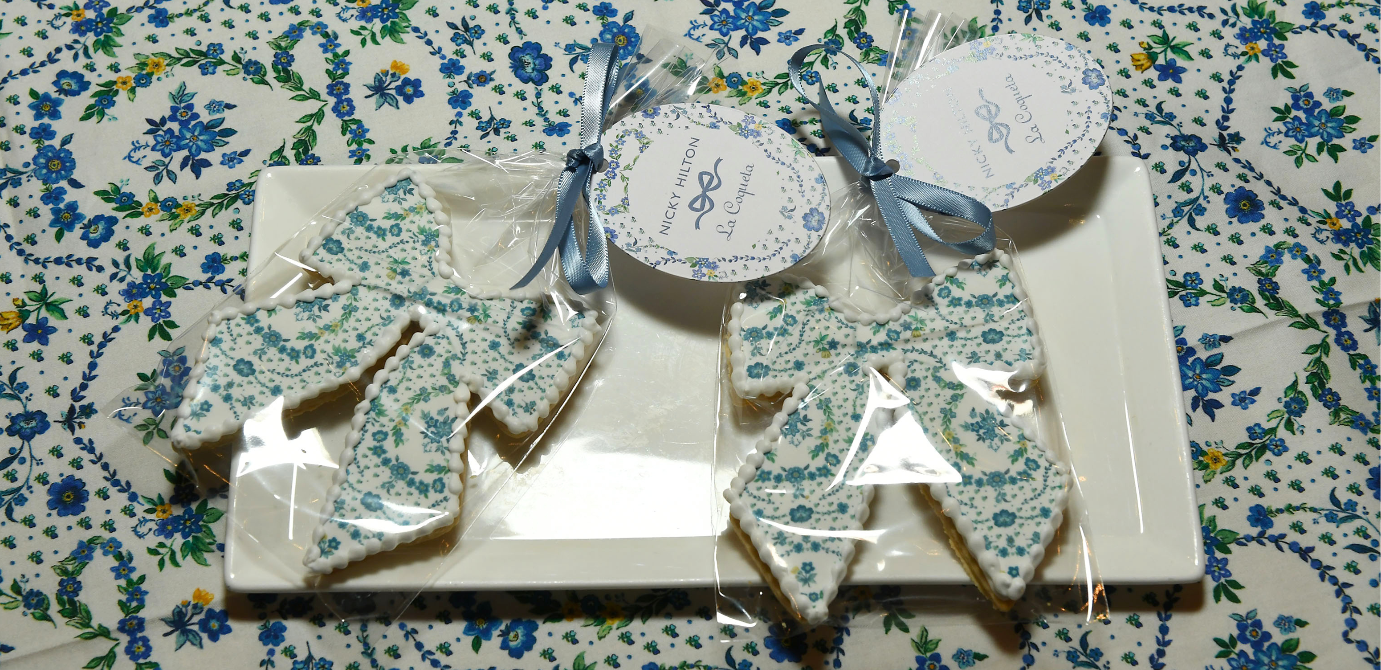 Guests were welcomed into a relaxed yet elegant brunch complete with fresh green juices, delicate pastries and the sweetest bespoke bow biscuits by Whimsical Sweets, a nod to one of the collection’s most charming signature prints. The atmosphere was warm and joyful from the outset, with Nicky Hilton and Celia Muñoz greeting guests and sharing the inspiration behind the designs.