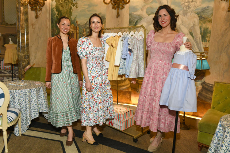 A clear favourite quickly emerged: the pink toile, featured across the Theodora dress, baby set, Porita hat and London dress for mama. A tapestry of Nicky’s life to date, it captures milestone moments with timeless femininity and thoughtful coordination, perfectly embodying the essence of the collaboration…classic silhouettes, refined prints and a celebration of shared moments.
