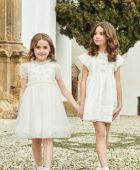 Crafted in luminous silk and delicate organza, each dress is brought to life through intricate floral embroidery, hand-smocking and the most refined details. Ethereal tulle and floral organza appliqué sit alongside silk taffeta and exquisite French lace, showcasing couture-level artistry throughout.