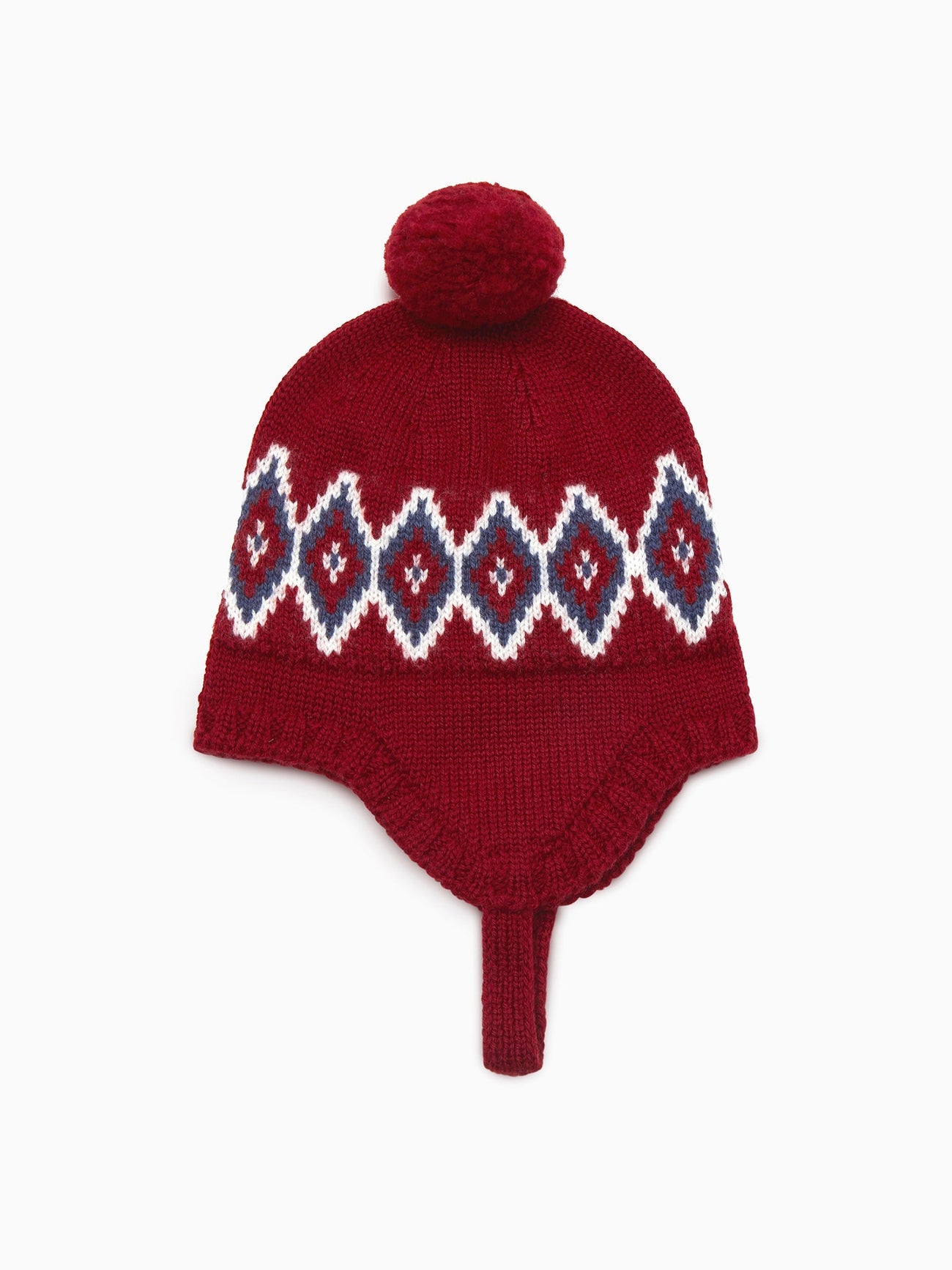 Burgundy Renta Merino Baby Knitted BonnetBurgundy Renta Merino Baby Knitted Bonnet