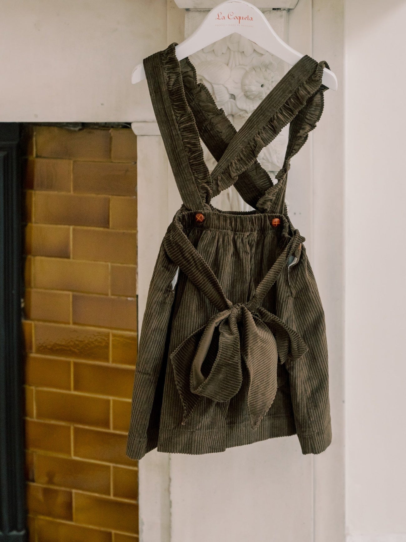 Chocolate Brown Reina Corduroy Girl Pinafore SkirtChocolate Brown Reina Corduroy Girl Pinafore Skirt