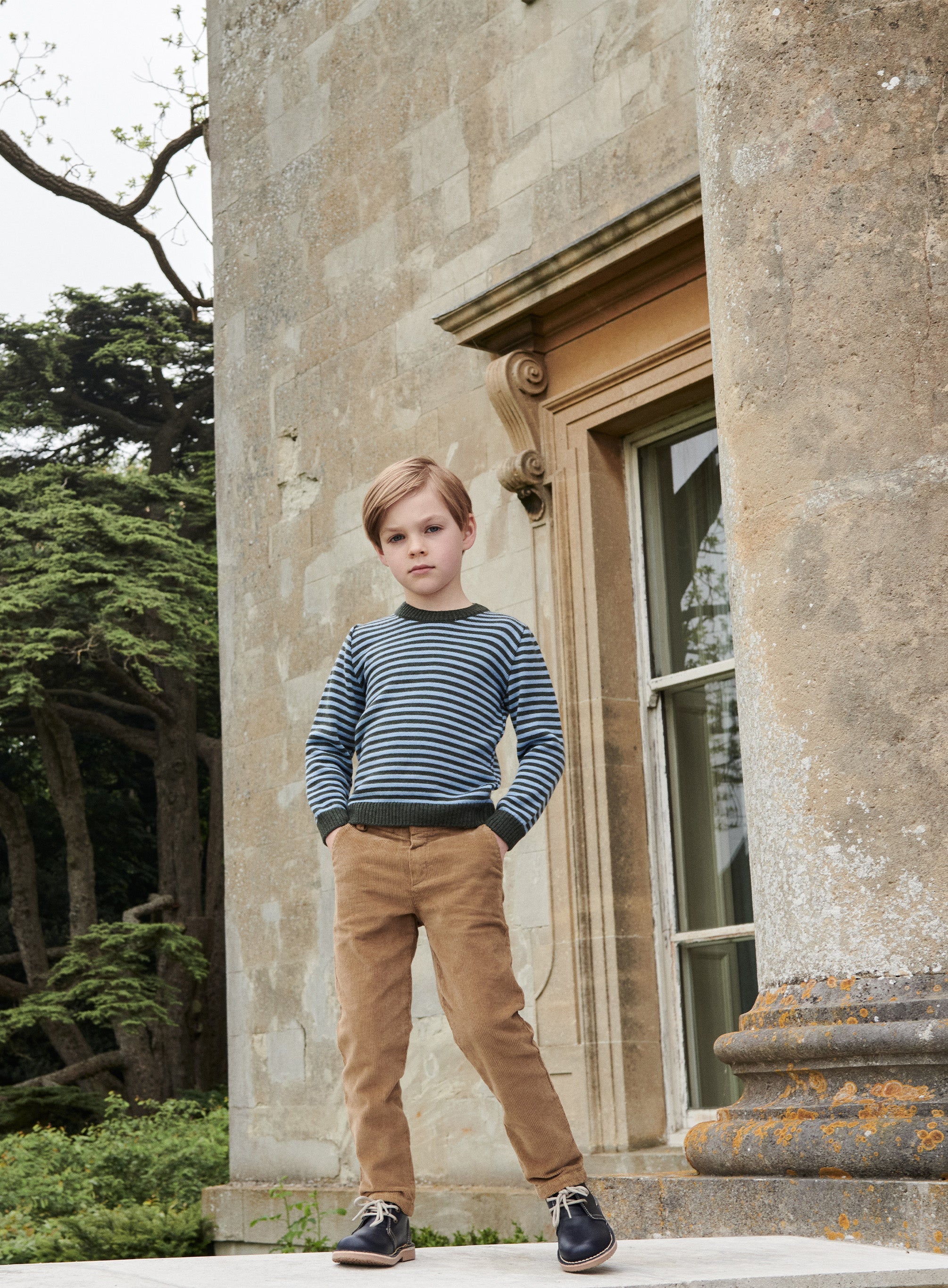 Mix traditional silhouettes, classic checks and bold woollen knits to create sophisticated outfits for your little boy.