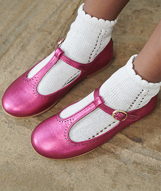 Indulge in luxury with Nappa leather, stitch-down details and metallic tones. Explore Mary Janes, T-Bar shoes, and summer footwear—all meticulously crafted in Spain.