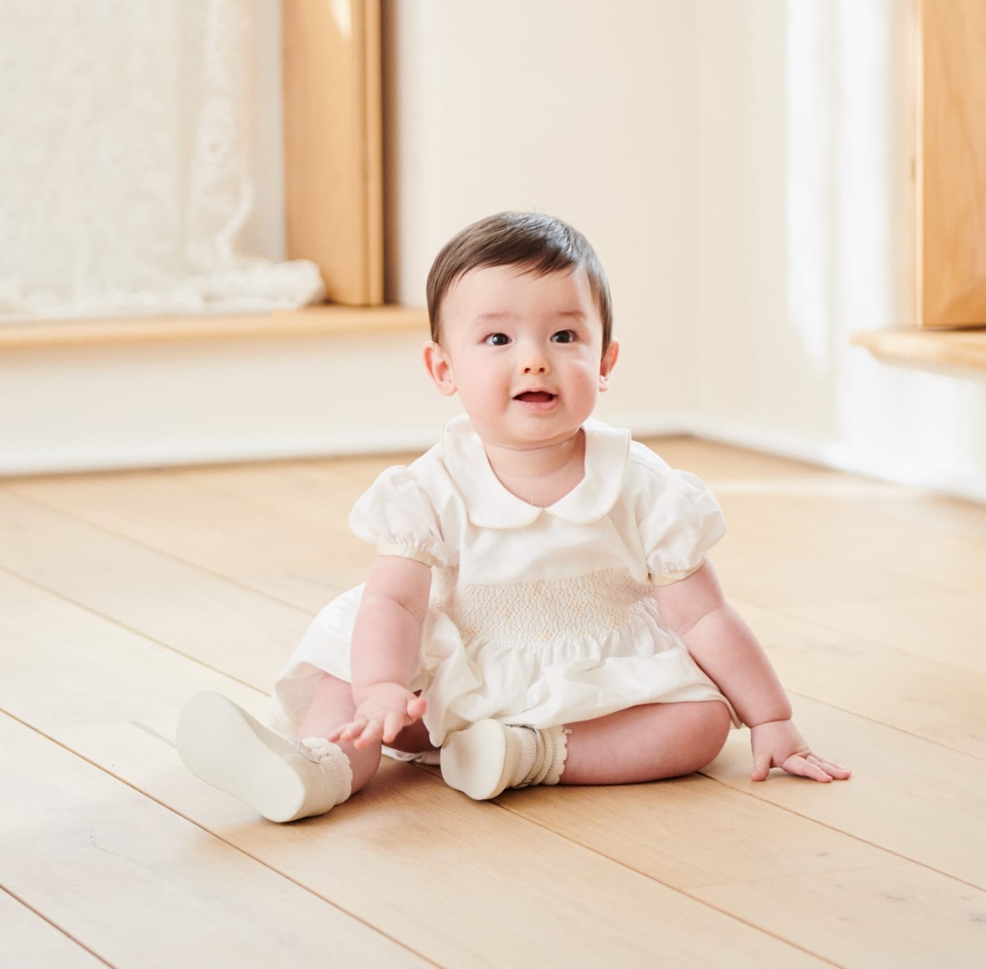 Discover traditional hand-smocked dresses and luxuriously soft cotton knitwear from La Coqueta’s Special Occasion Collection, proudly crafted by artisans with the modern ceremony in mind. Pair effortless ivory dresses with matching knits like the Linda Baby Cardigan, which has a charming bolero-style silhouette that sits on the shoulders. Be sure to pair your favourite La Coqueta baby girl wedding outfit with a pair of supple Nappa leather shoes like our Pram Mary Janes for babies, and Mini Mary Janes for little girls learning to walk.