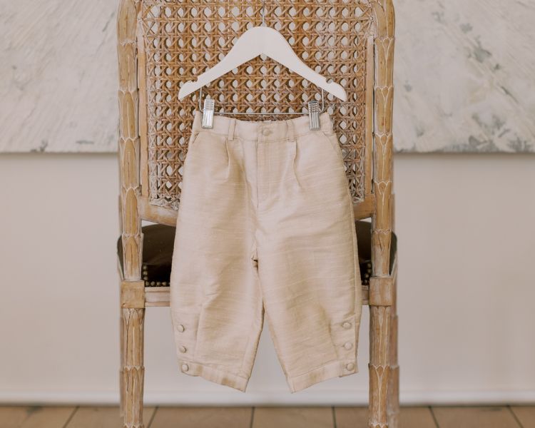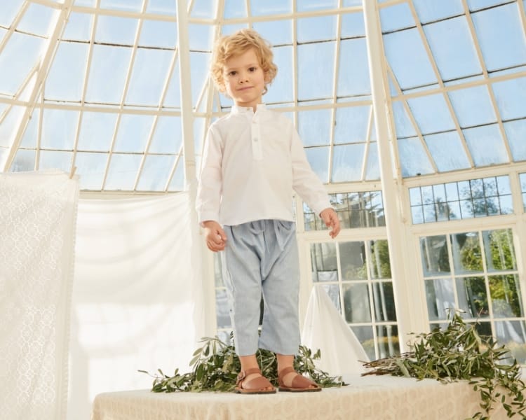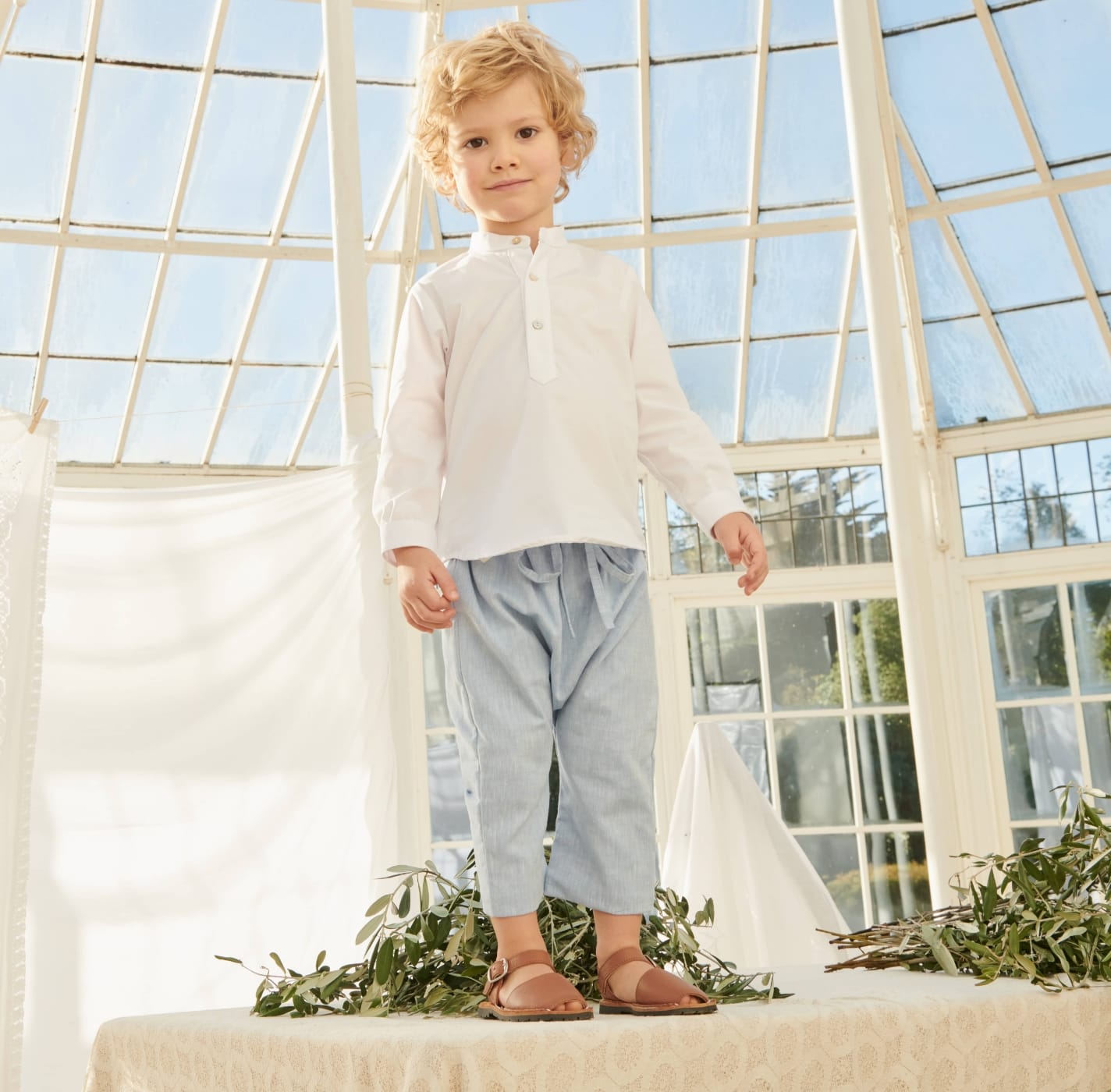 Classic shapes like the Jazmin Boy Shirt come in classic cotton oxford or a linen blend for the summer months, ensuring your little one keeps cool and comfortable all day long at your upcoming nuptials. Don’t forget to layer up your boy’s wedding outfit with a lightweight cotton knit on those balmy summer nights, ensuring delicate skin is protected from any evening chills.