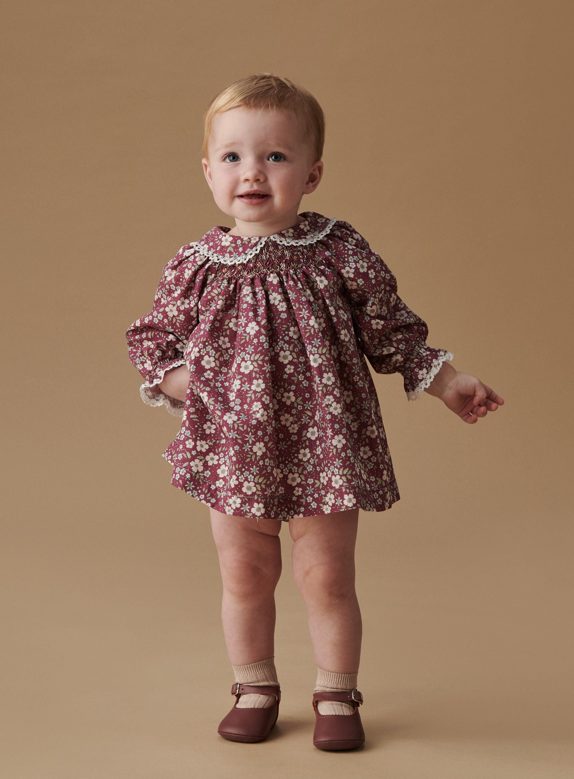 Smock dresses are perfect for every special family occasion, like weddings and communions or big celebrations. For flower girls at upcoming nuptials, match sisters and family members in matching smock dresses for girls and dress sets for baby girls, like La Coqueta’s Santina Smock styles from the Ceremony Collection. Elevate special days like birthday parties and family events with floral print smock dresses in a range of bold colours, layering up with soft knitwear in pastel shades during brisk evenings.