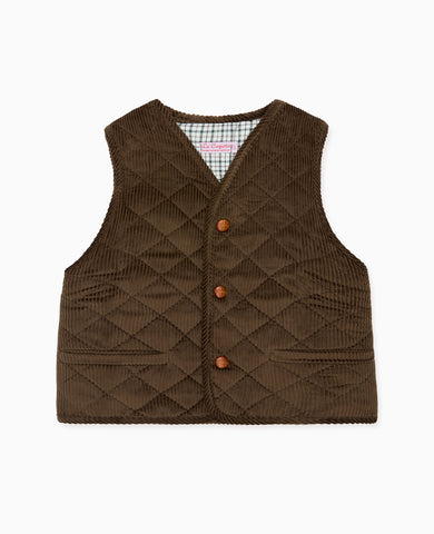 An iconic wardrobe staple for the winter season, La Coqueta's Reina Corduroy Girl Pinafore Skirt is beautifully crafted from exceptionally soft cotton corduroy in a rich shade of chocolate brown. This charming skirt features pinafore straps that cross over at the back, adorned with delicate butterfly frills for a subtle feminine touch, and a stunning oversized self-tie floppy bow. Fully lined with 100% cotton, it provides extra warmth and coverage, making it ideal for cooler weather. The elasticated waist, complete with hidden buttons, ensures a comfortable and adjustable fit. Coordinate with siblings wearing the Caza Corduroy Kids Sleeveless Jacket and Salma Corduroy Baby Dungarees for those adorable, perfect-picture moments.