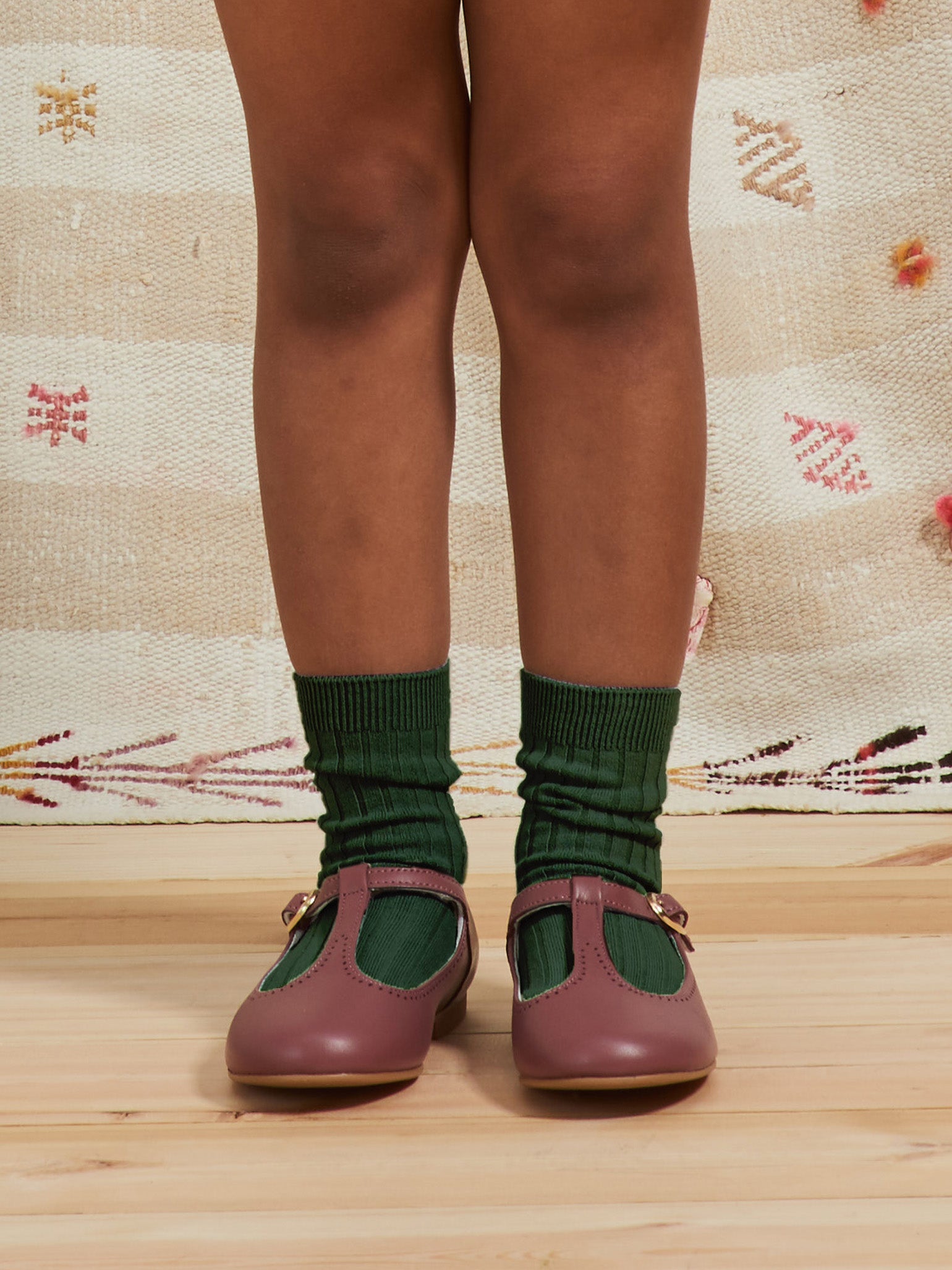 An essential to finish off any outfit, add that final La Coqueta touch with our gorgeous cotton-rich Fern Ribbed Short Kids Socks. Made from a super-soft cotton blend knit, these classic wardrobe staples have plenty of stretch for maximum comfort. Proudly made in Spain, our hosiery comes in every colour you can imagine, with a wide range of socks and tights to perfectly compliment our kid's leather shoes. Great come rain or shine, these traditional ribbed socks are perfect for any occasion. Available in Ribbed Kids Tights and Ribbed Knee High Kids Sock versions, ideal for matching sibling styles.