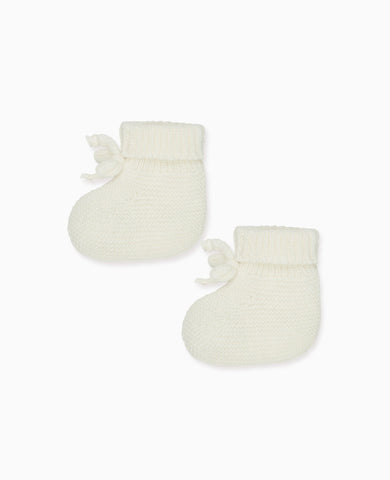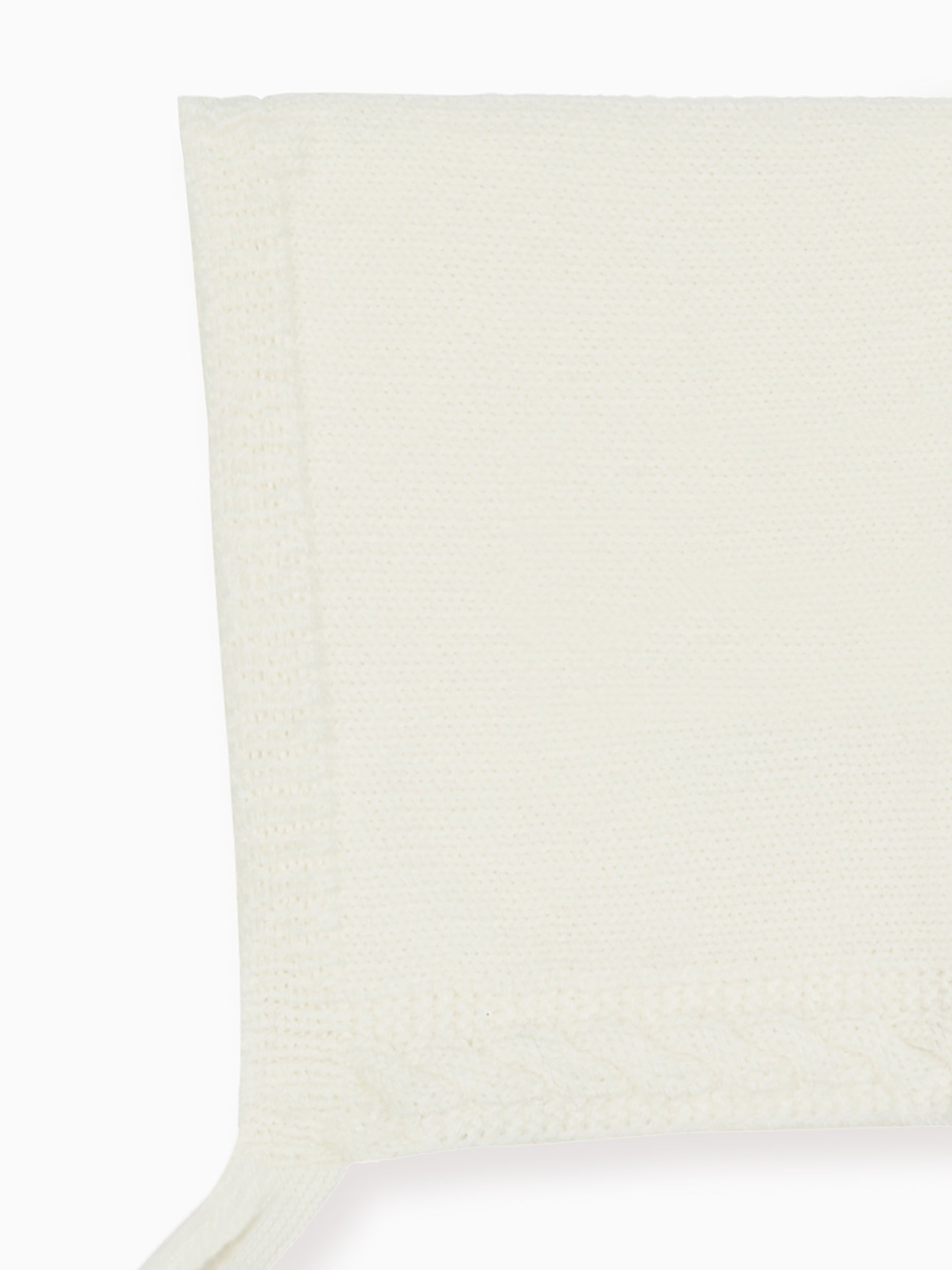 La Coqueta's Alma Merino Baby Knitted Bonnet is the quintessential essential for newborns, crafted from pure Merino wool knitted with a fine gauge for a luxuriously soft handle that is gentle on the most sensitive skin while providing exceptional warmth. This charming bonnet is a thoughtful gift for new arrivals and expecting parents with its irresistibly cute appeal. The knitted straps fasten securely under the chin, ensuring a snug and protective fit. In a versatile shade of soft ivory, it is perfect for both baby girls and boys, making it a stylish and practical choice for seasonal strolls and keeping little ones cosy. Perfect as a thoughtful gift, it pairs beautifully with matching knitted sets from La Coqueta’s latest collection.