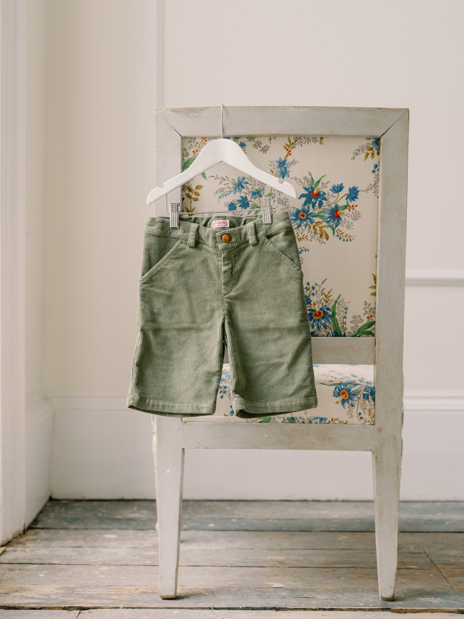 La Coqueta's Lucas Corduroy Boy Shorts are a perennial favourite as the seasons change, tailored in Spain from pure cotton corduroy that washes and wears well with every use. They feature a full leg and high-rise shape that sits just above the hip for a classic, mid-century shape and unquestionable comfort, with belt loops, concealed pockets at the back and reinforced vertical pockets at the front. Modify for the perfect fit with the internal waist adjuster, with an elasticated waist and hidden buttons to make the waistline smaller or larger, ensuring your little one gets as much wear as possible during growth spurts. Finished with a button fastening and zip fly, this version is rendered in a rich shade of olive green for endless style possibilities. Coordinate with a younger sibling wearing the Coroza Corduroy Baby Dungarees for those adorable, perfect-picture moments.