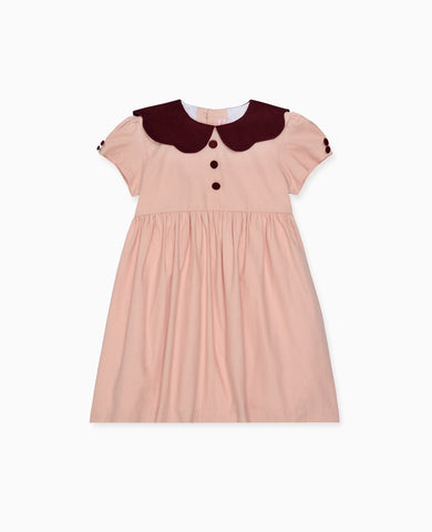 Every creation by Celia Muñoz epitomises La Coqueta's dedication to meticulous craftsmanship and our rich Spanish heritage, drawing inspiration from Celia's upbringing in Granada. There are so many delicate details on La Coqueta's Julieta Baby Girl Set, from the burgundy ric rac trims to the velvet ribbon bow accents on the cuffs. It is made from mid-weight pure cotton that's woven with a herringbone pattern in the dreamiest shade of pink, fully lined with contrasting white cotton for extra warmth, in a relaxed floaty empire-line top and matching bloomer set. It has a charming scalloped collar in burgundy cotton velvet, long sleeves with gathered cuffs, covered button details and a ric rac trim across the waistband. The matching bloomers are pull-on and elasticated at the waist and legs for fuss-free changing whilst out and about. Coordinate with a big sister wearing the Julieta Girl Dress for those adorable perfect-picture moments.