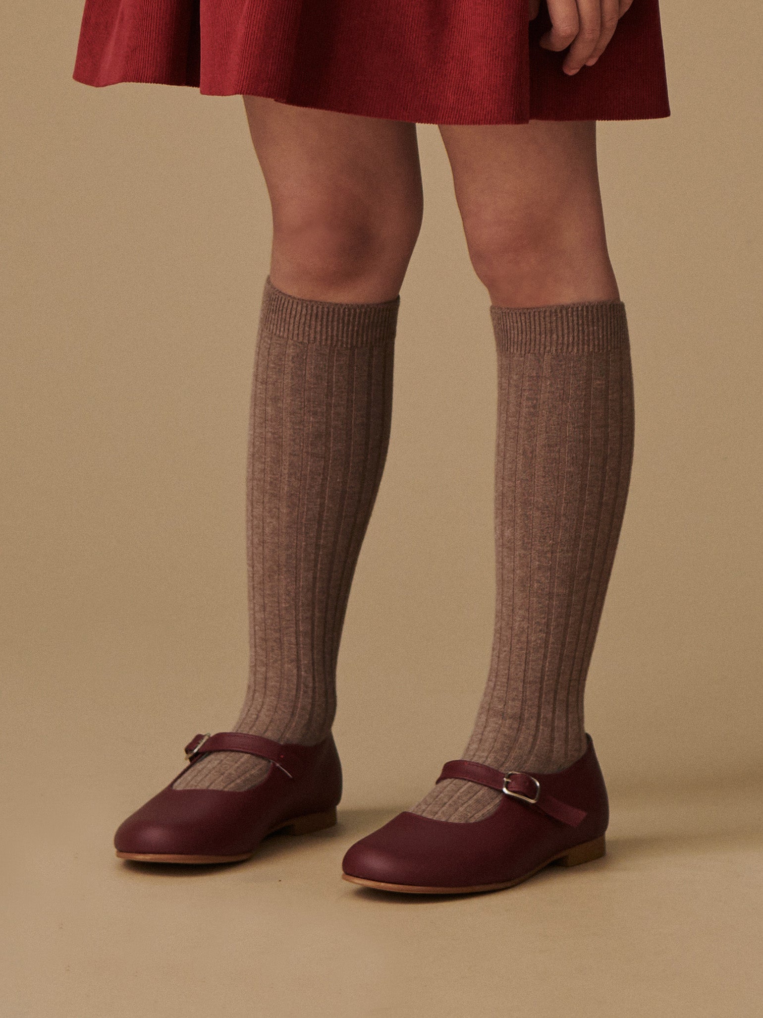 An essential to finish off any outfit, add that final La Coqueta touch with our gorgeous cotton-rich Soft Brown Ribbed Knee High Kids Socks. Made from a super-soft cotton blend knit, these classic wardrobe staples have plenty of stretch for maximum comfort. Proudly made in Spain, our hosiery comes in every colour you can imagine, with a wide range of socks and tights to perfectly compliment our kid's leather shoes. Great come rain or shine, these traditional ribbed socks are perfect for any occasion. Available in Ribbed Kids Tights and Ribbed Short Kids Socks versions, ideal for matching sibling styles.