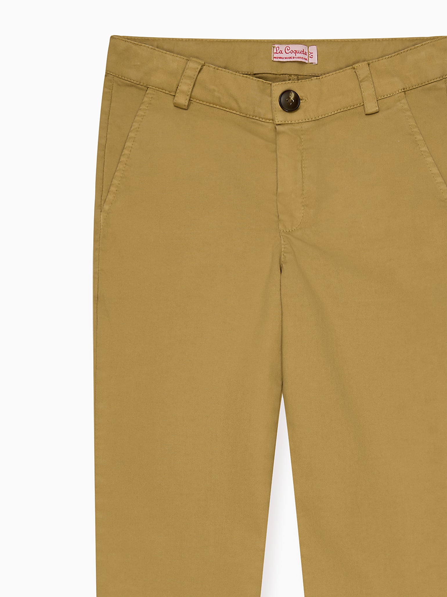 The Elio Boy Chinos are a quintessential La Coqueta favourite for every young gentleman, ensuring plenty of wear all year round. This version is rendered in a classic shade of stone, which can be easily dressed up or down depending on the occasion. They are a sartorial favourite whatever the weather, crafted from high-quality cotton, tailored with a touch of elastane for extra stretch, and feature a classic slim fit style with a handcrafted button placket and zip to fasten, belt loops, slant front pockets and concealed pockets at the back. Modify for the perfect fit with the internal waist adjuster, with an elasticated waist and hidden buttons to make the waistline smaller or larger, ensuring your little one gets as much wear out of this classic style.